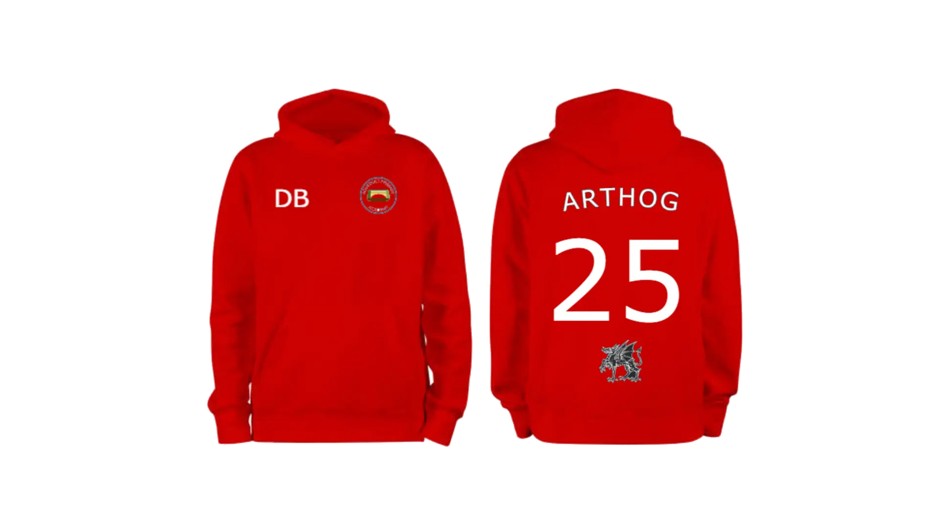 Hoodies with school logo embroidered, initials and “Arthog 25” printed onto back.