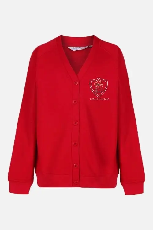This school cardigan is a practical and comfortable layering option for everyday wear. Available in classic school colours, it is made from a durable polyester/cotton blend and features an embroidered school logo on the garment for a smart, uniform finish.