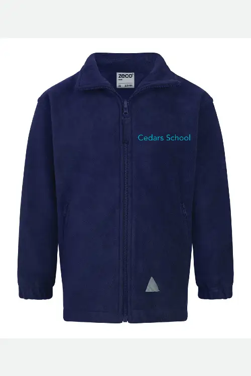 Navy Blue zip up fleece with the Cedars school logo embroidered directly onto the garment.