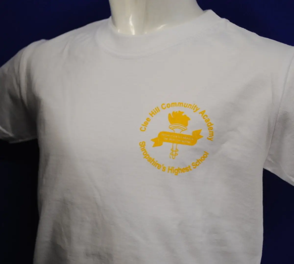 This white PE T-shirt is a comfortable and practical option for school sports and physical education. Made from 100% cotton, it is breathable and suitable for active wear. The T-shirt features an embroidered or printed school logo on the garment for a smart and recognisable finish.