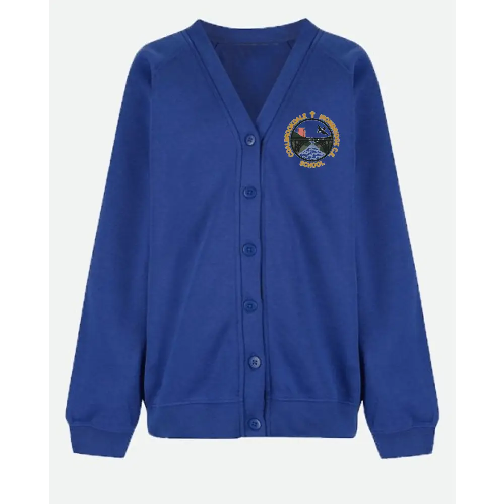 This school cardigan is a practical and comfortable layering option for everyday wear. Available in classic school colours, it is made from a durable polyester/cotton blend and features an embroidered school logo on the garment for a smart, uniform finish.