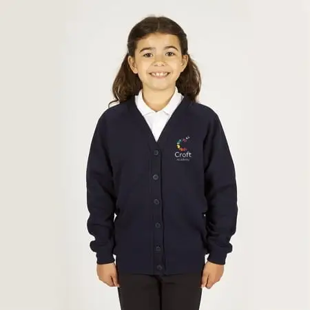 This school cardigan is a practical and comfortable layering option for everyday wear. Available in classic school colours, it is made from a durable polyester/cotton blend and features an embroidered school logo on the garment for a smart, uniform finish.