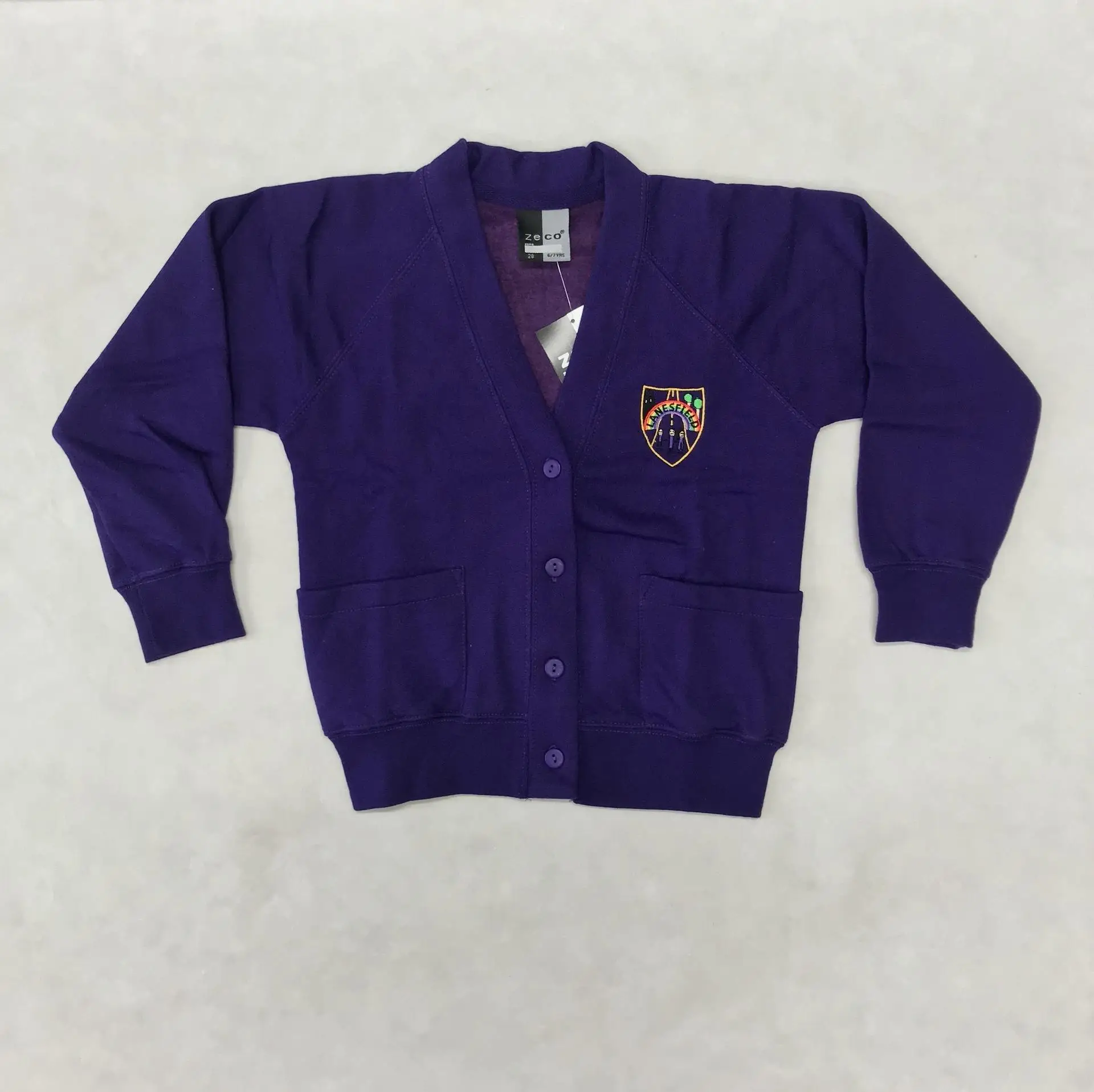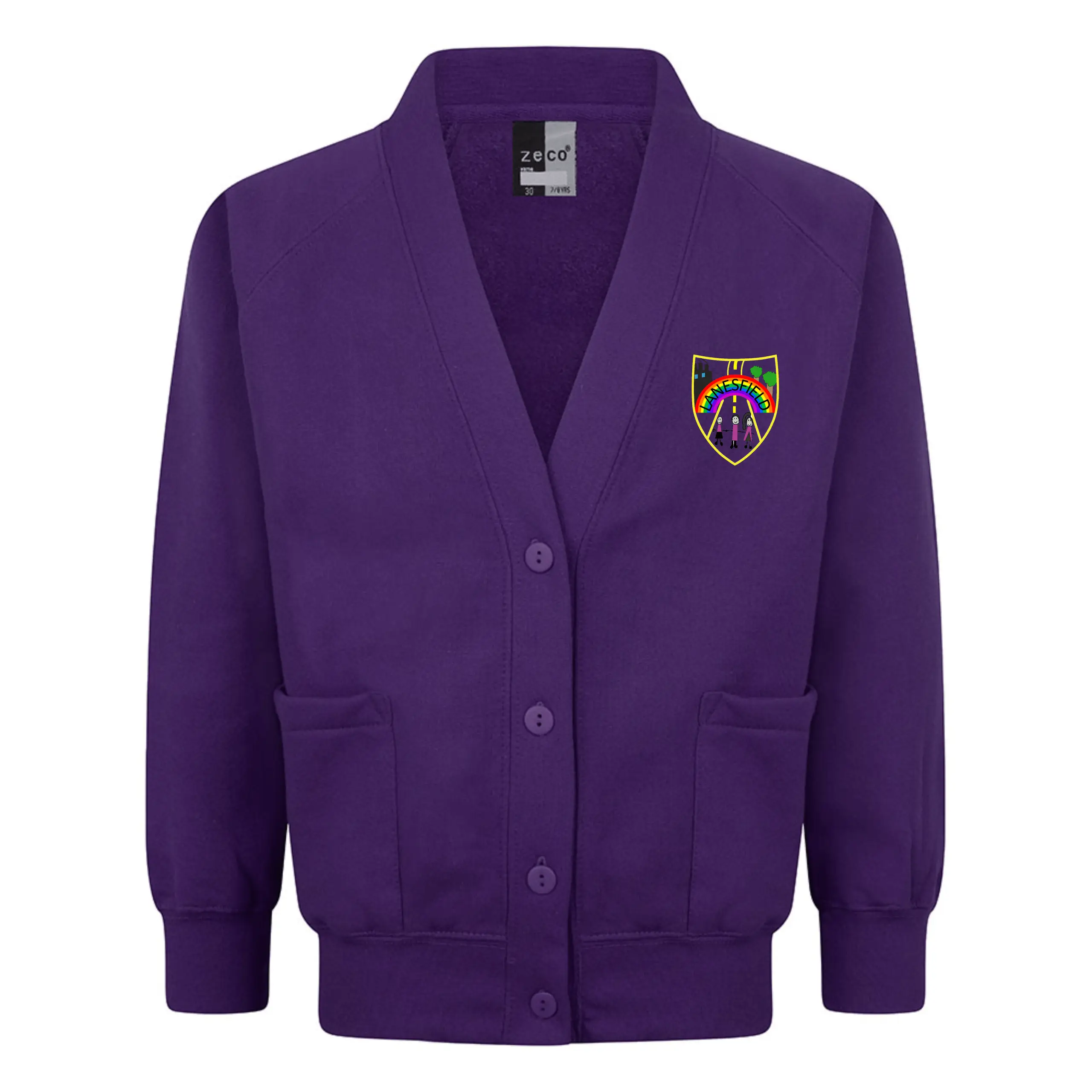 This school cardigan is a practical and comfortable layering option for everyday wear. Available in classic school colours, it is made from a durable polyester/cotton blend and features an embroidered school logo on the garment for a smart, uniform finish.