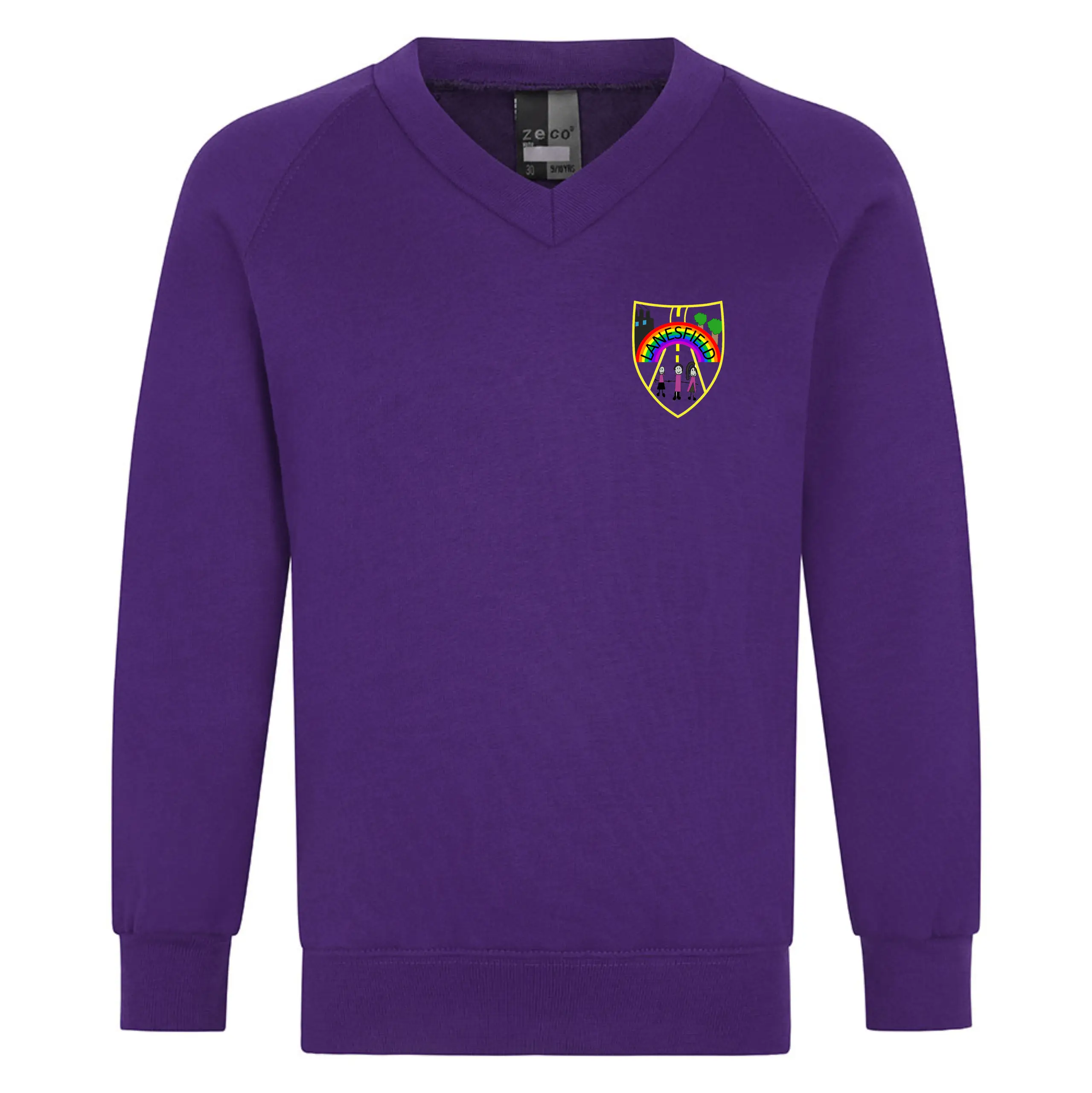 This V-neck jumper offers a smart, traditional school look with everyday comfort. Available in classic school colours, it is made from a hard-wearing polyester/cotton blend and features an embroidered school logo on the garment, making it ideal for daily school use.