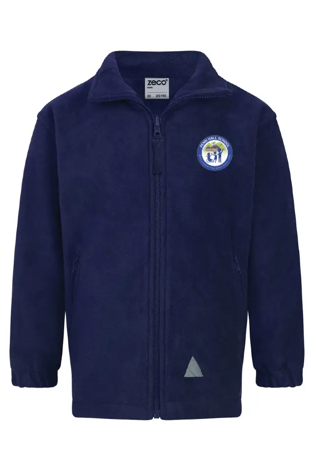 Navy Blue zip up fleece with the Penn Hall school logo embroidered directly onto the garment.