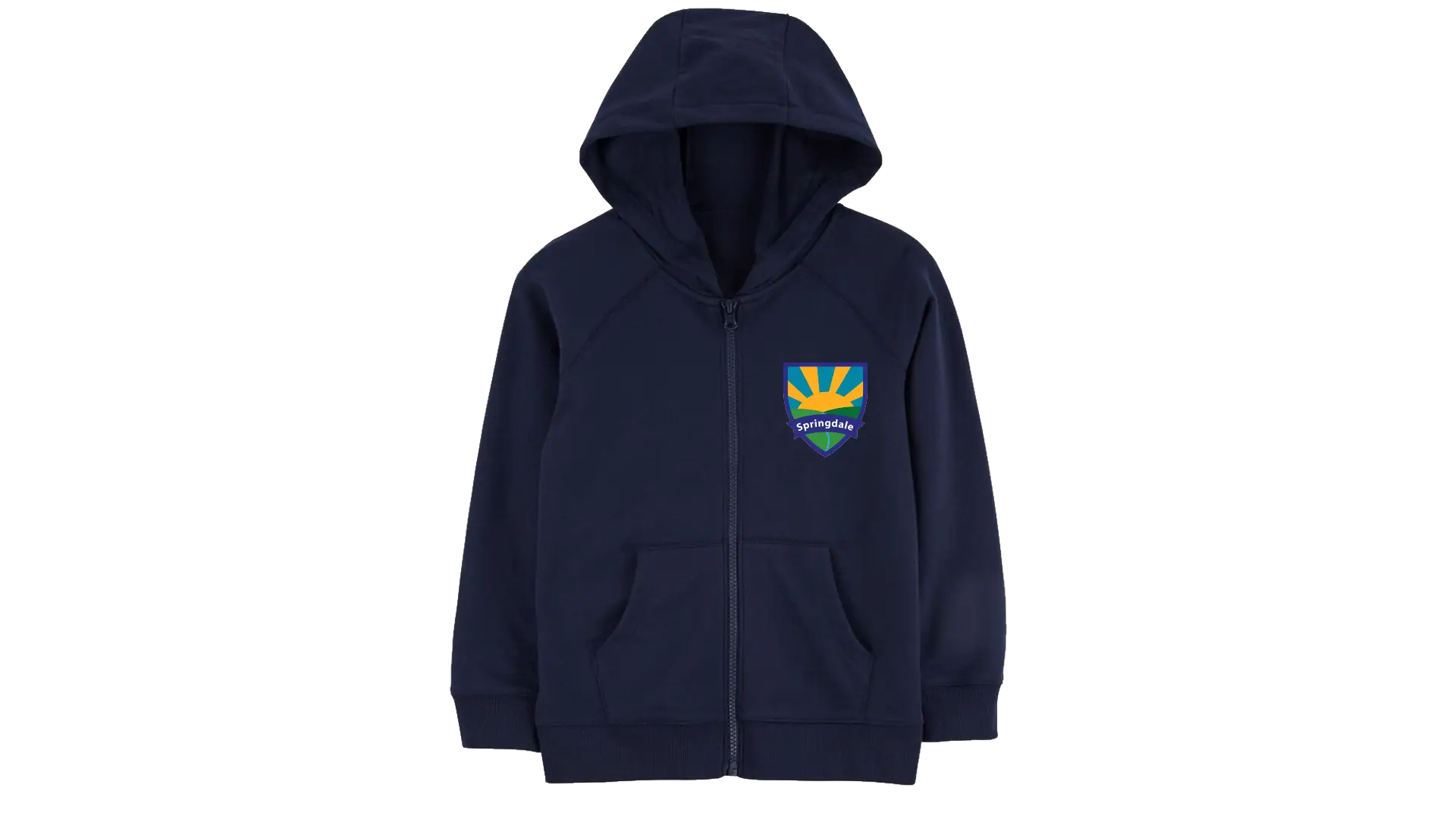 Springdale navy blue P.E. hoodie for outdoor activities.