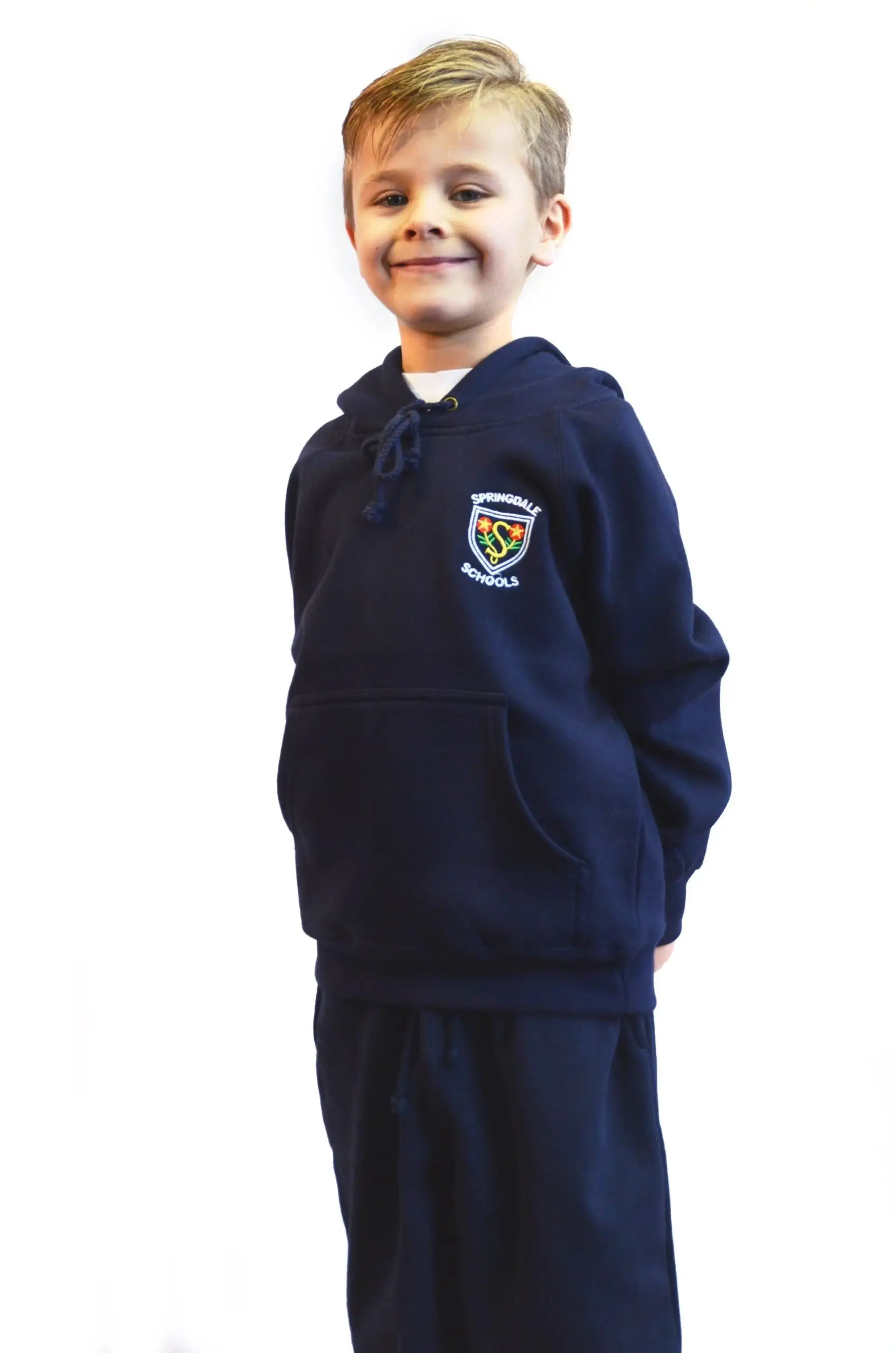 Navy blue jogging bottoms for outdoor P.E. activities. No logo embroidered onto jogging bottoms.