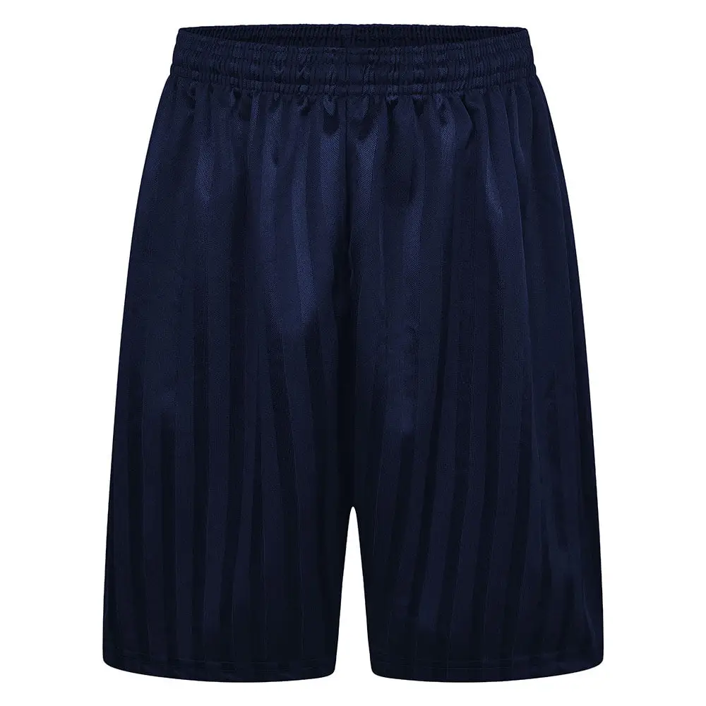 Navy Blue shadow stripe P.E. shorts. 100% Polyester.