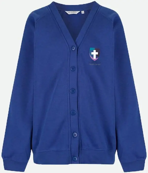 This school cardigan is a practical and comfortable layering option for everyday wear. Available in classic school colours, it is made from a durable polyester/cotton blend and features an embroidered school logo on the garment for a smart, uniform finish.