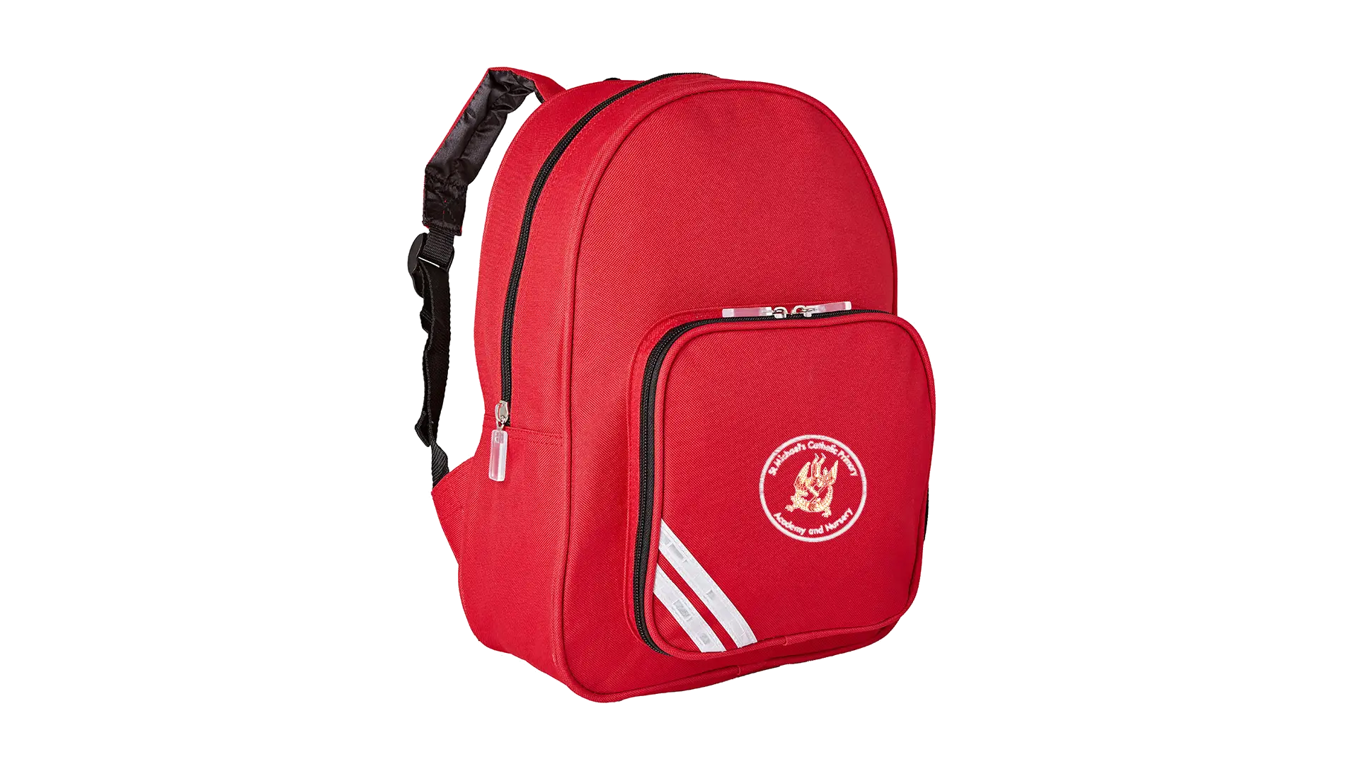 Mesh water bottle holder on the side of rucksack. Two main compartments to rucksack.
