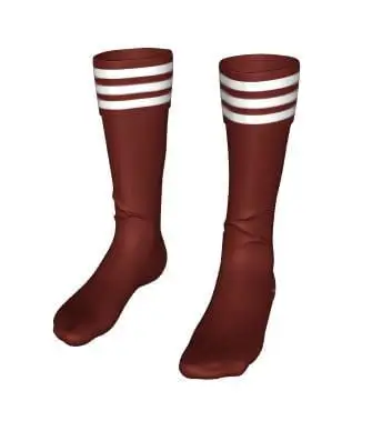 Maroon socks with white hoops on fold down. 98% Polyamide/2% Lycra.