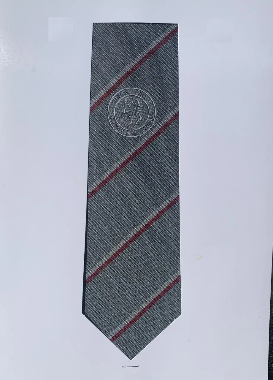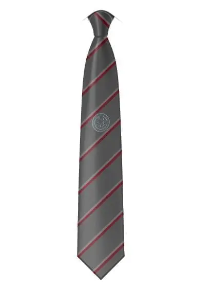 Grey with silver and maroon stripes, TT UTC logo on tie.