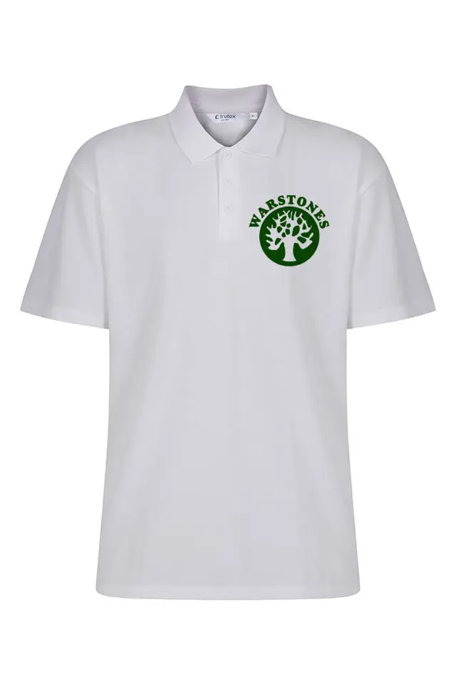 Warstones white polo shirt with school embroidered logo.