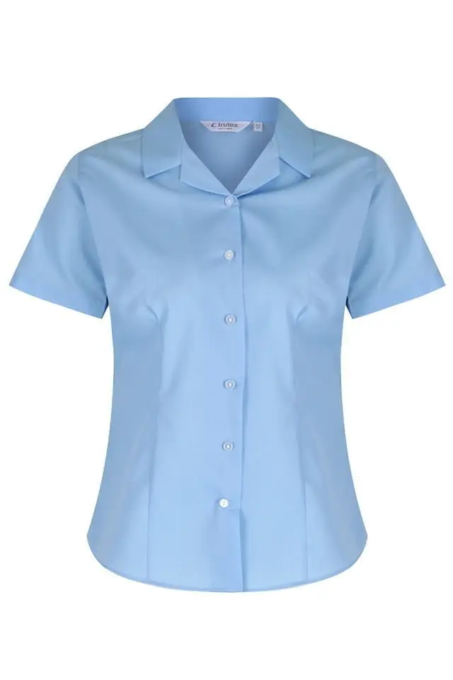 Girls short sleeve, non-iron blouses with rever collar, fitted style. Non-iron blouses. Twin pack.