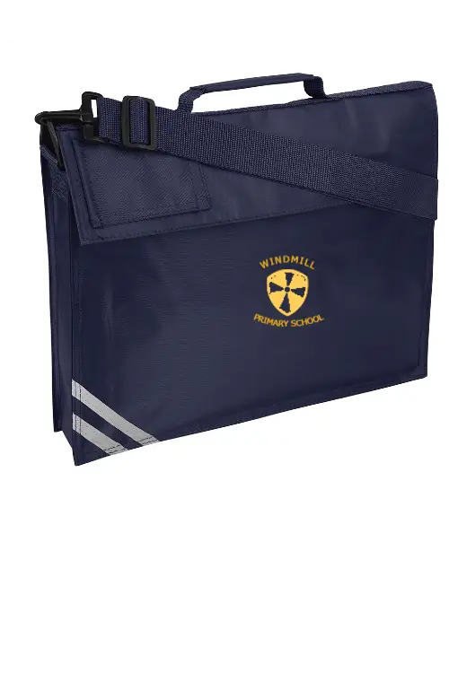 Navy Book Bag with Shoulder Strap – printed School Logo